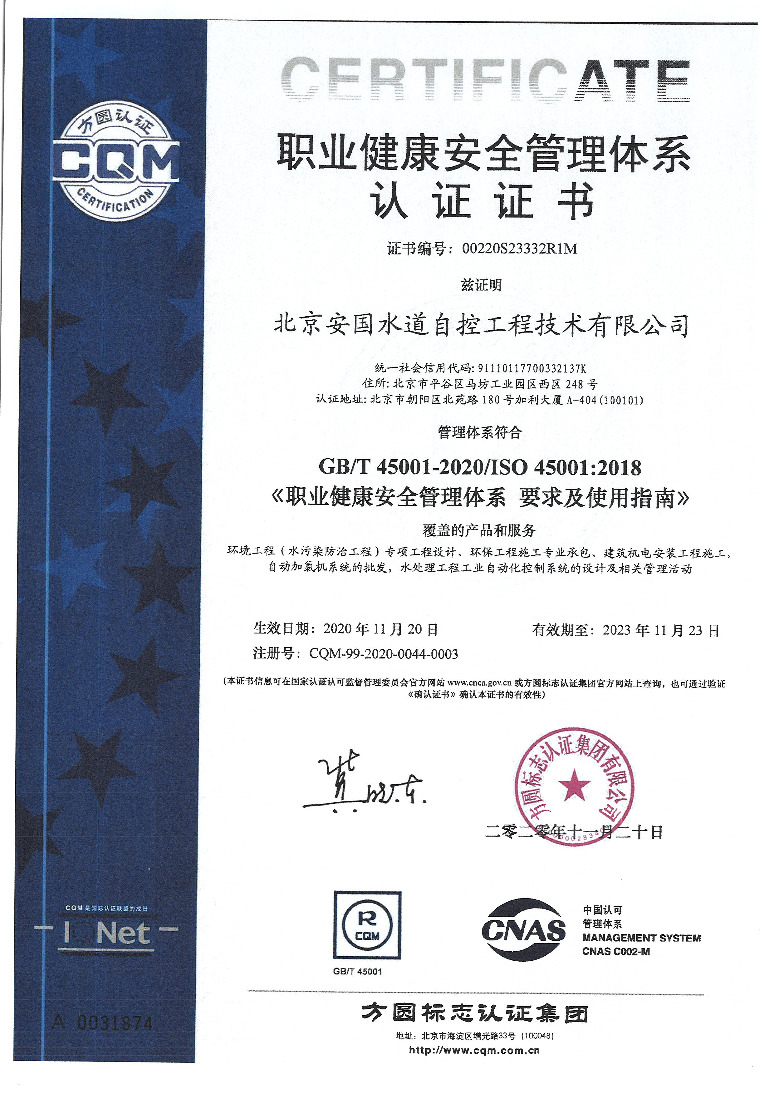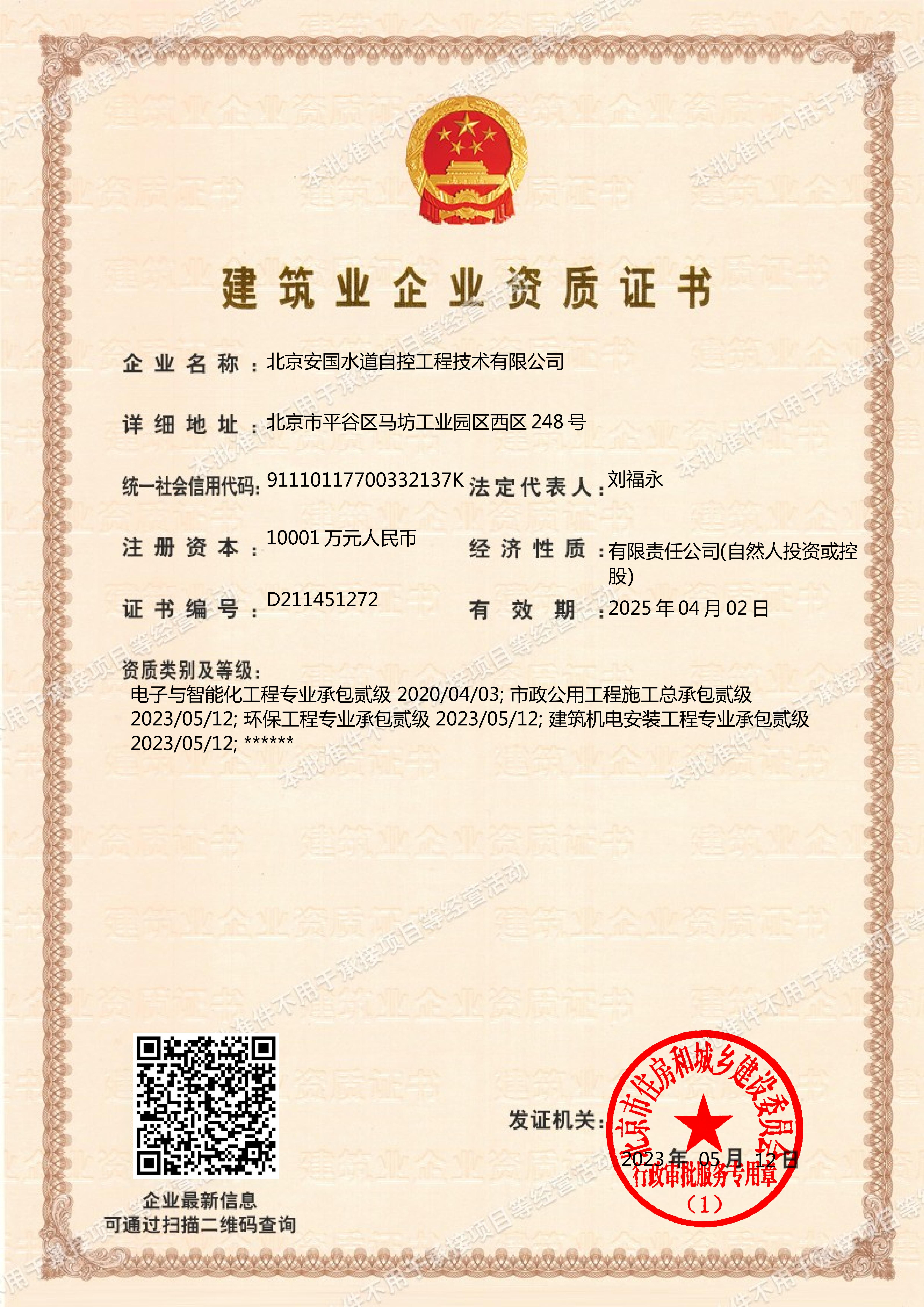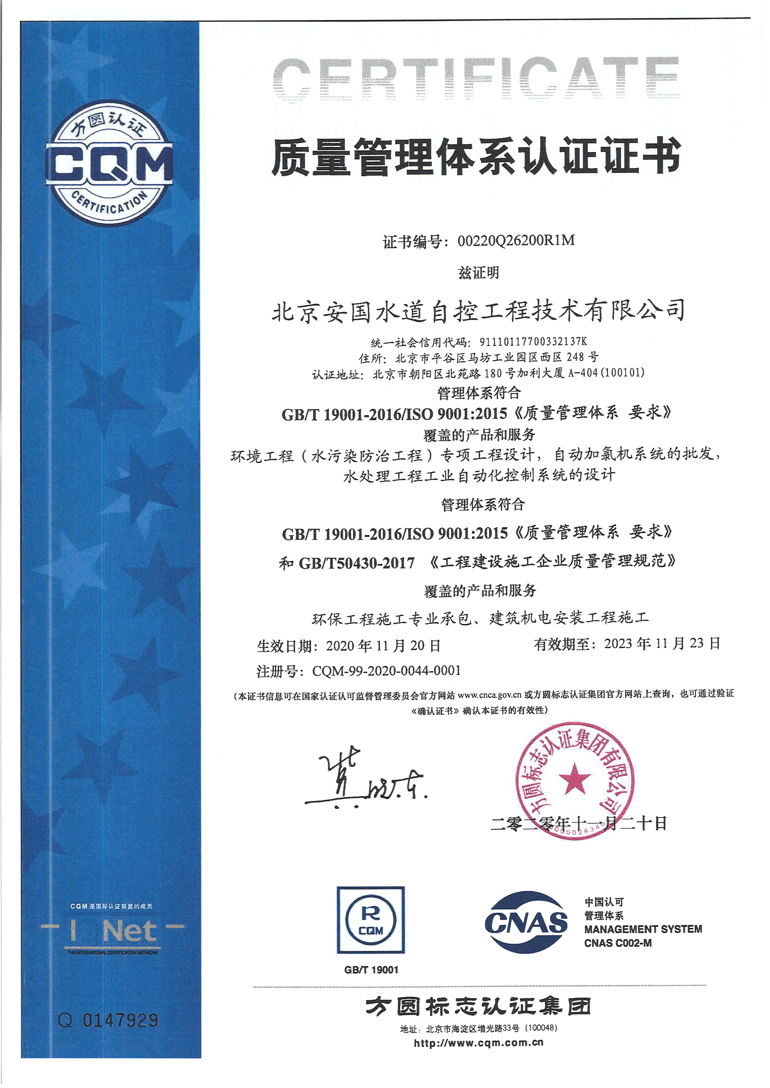 北京安國(guó)水道自控工程技術(shù)有限公司2015年入駐中國(guó)給水排水品牌委員會(huì)